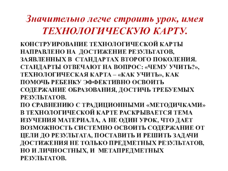 Значительно легче строить урок, имея ТЕХНОЛОГИЧЕСКУЮ КАРТУ.