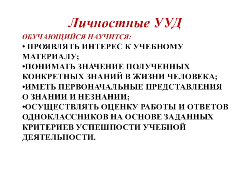 Личностные УУД