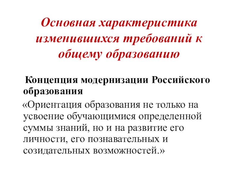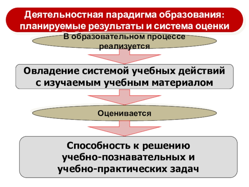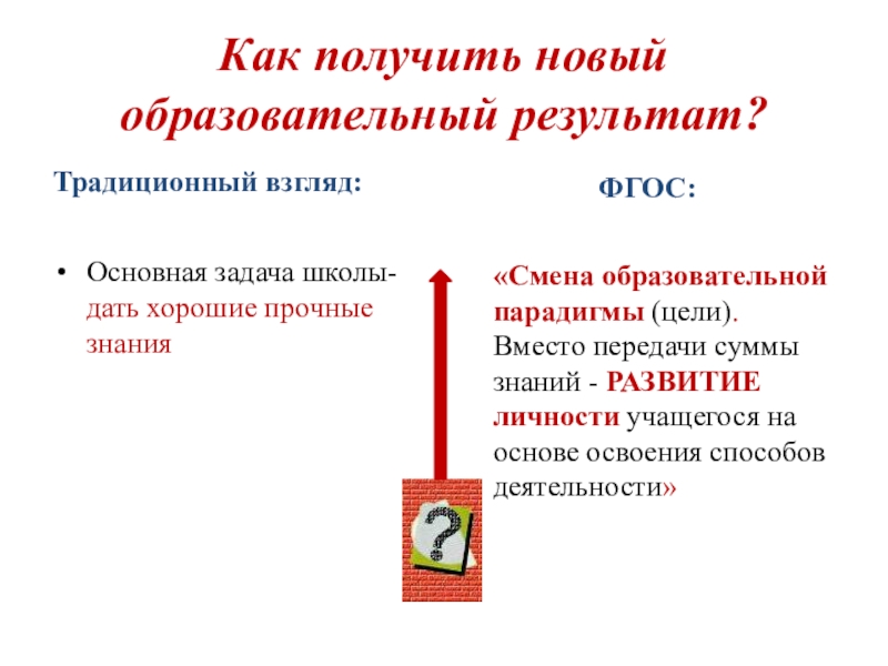 «Смена образовательной парадигмы (цели). Вместо передачи суммы знаний - РАЗВИТИЕ личности учащегося на основе освоения способов деятельности»