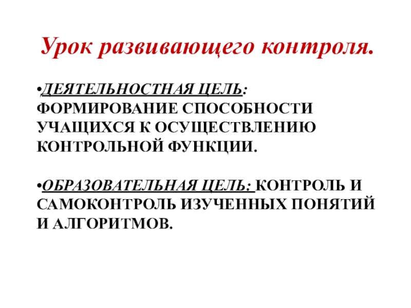 Урок развивающего контроля.