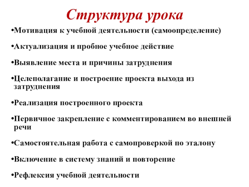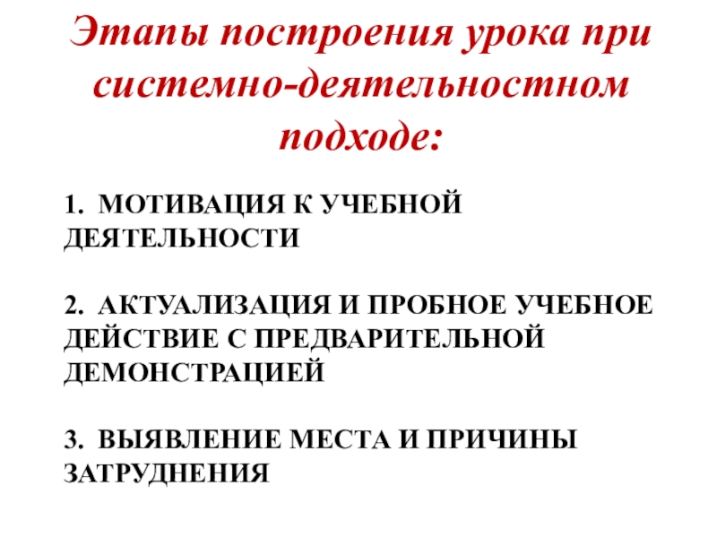 Этапы построения урока при системно-деятельностном подходе: