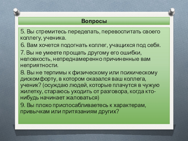 5. Вы стремитесь переделать, перевоспитать своего коллегу, ученика.