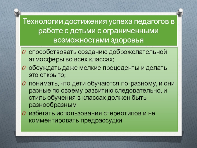 Слайд 23Технологии достижения успеха педагогов в работе с детьми с ограниченными возможностями
