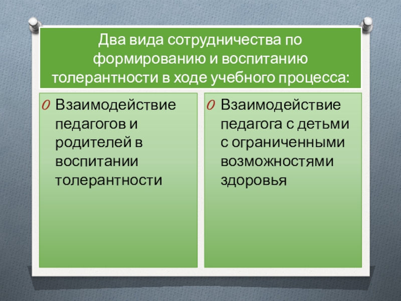 Слайд 4Два вида сотрудничества по формированию и воспитанию толерантности в ходе учебного