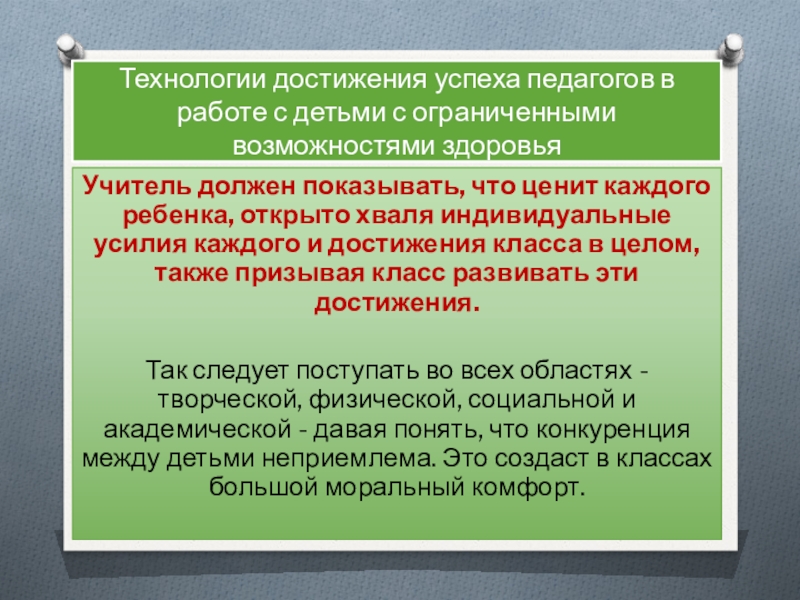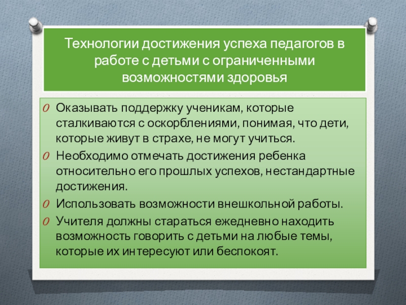 Слайд 22Технологии достижения успеха педагогов в работе с детьми с ограниченными возможностями