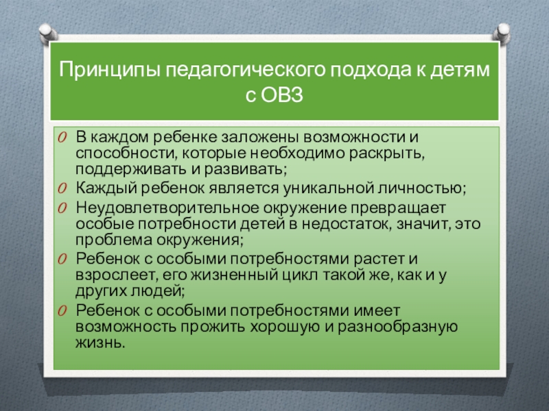 Слайд 25Принципы педагогического подхода к детям с ОВЗ