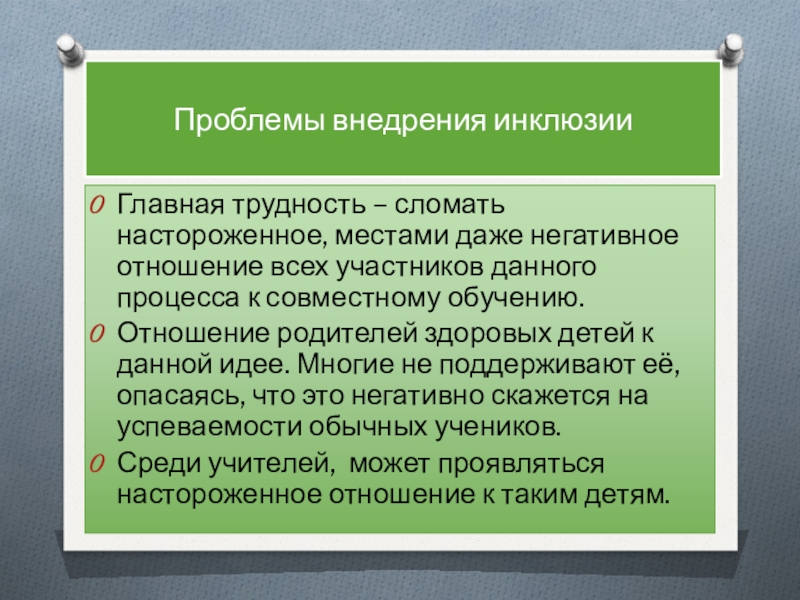 Отношение родителей здоровых детей к данной идее. Многие не поддерживают её, опасаясь, что это негативно скажется на успеваемости обычных учеников.