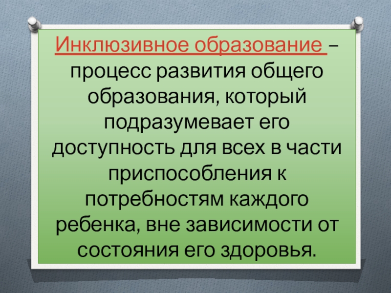 Слайд 2Инклюзивное образование – процесс развития общего образования, который подразумевает его доступность для