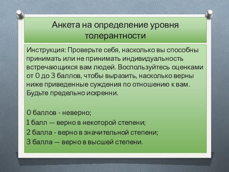 принимать или не принимать индивидуальность встречающихся вам людей. Воспользуйтесь оценками от 0 до 3 баллов, чтобы выразить, насколько верны ниже приведенные суждения по отношению к вам. Будьте предельно искренни.
