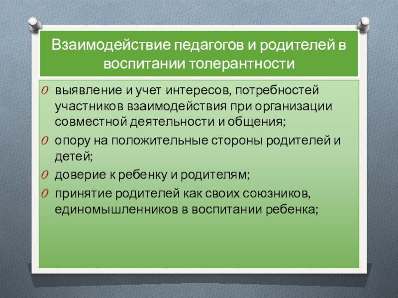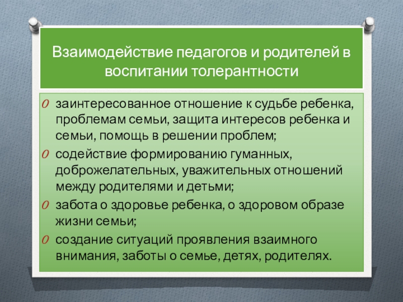 Взаимодействие педагогов и родителей в воспитании толерантности
