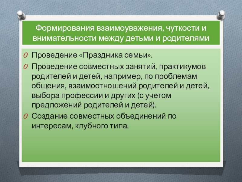 Слайд 20Формирования взаимоуважения, чуткости и внимательности между детьми и родителями