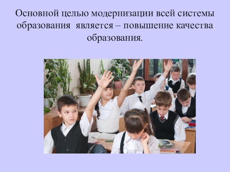 Слайд 2Основной целью модернизации всей системы образования является – повышение качества образования.