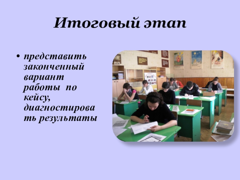 представить законченный вариант работы по кейсу, диагностировать результаты