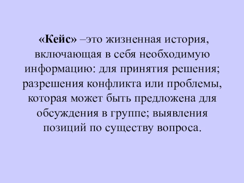 Слайд 14 «Кейс» –это жизненная история, включающая в себя необходимую информацию: для