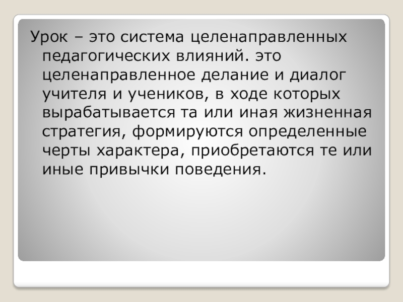 Слайд 5Урок – это система целенаправленных педагогических влияний. это целенаправленное делание и