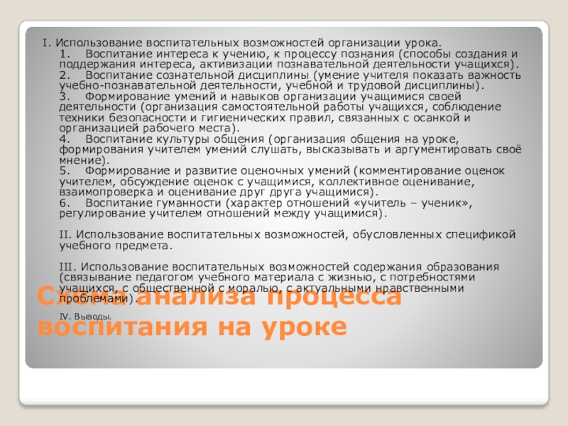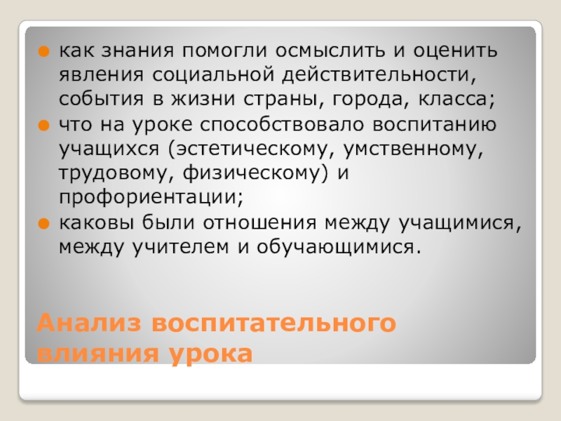Слайд 16. Воспитательный анализ урока. Примерная схема анализа урока