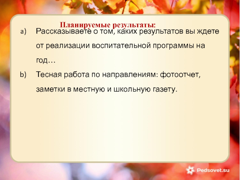 Планируемые результаты: