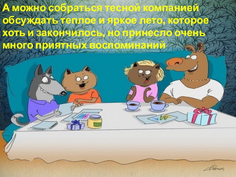 Слайд 9А можно собраться тесной компанией обсуждать теплое и яркое лето, которое