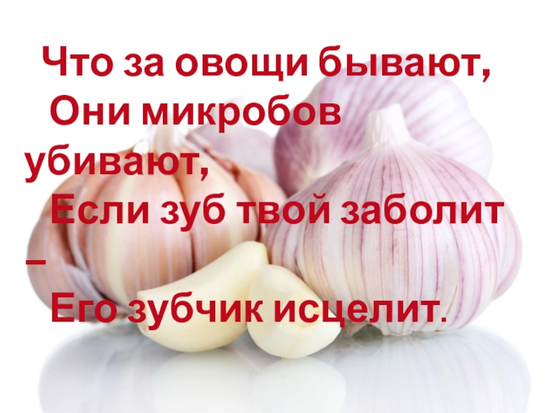 Что за овощи бывают,   Они микробов убивают,   Если зуб твой заболит