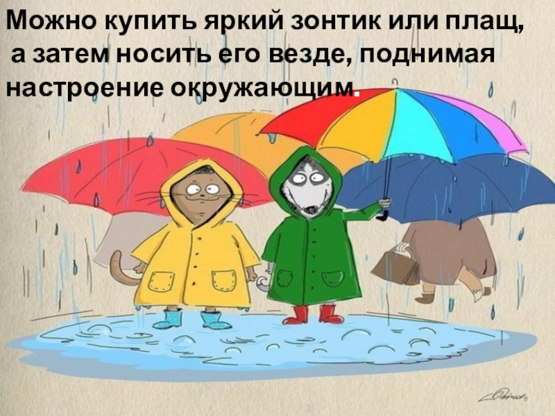Можно купить яркий зонтик или плащ, а затем носить его везде, поднимая настроение окружающим.