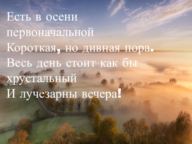 Есть в осени         первоначальнойКороткая, но дивная пора. Весь день