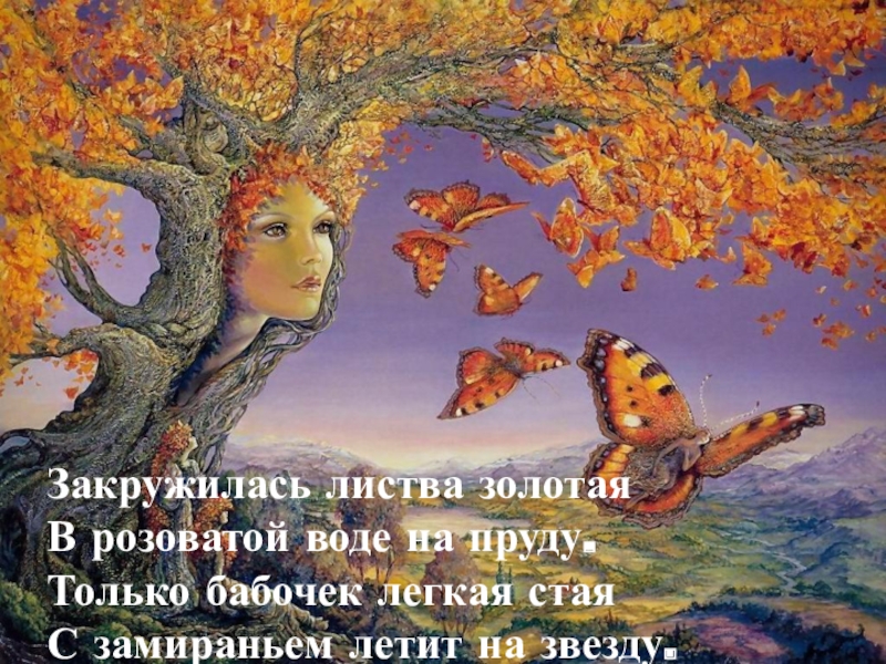 Слайд 17Закружилась листва золотая В розоватой воде на пруду. Только бабочек легкая стая С замираньем