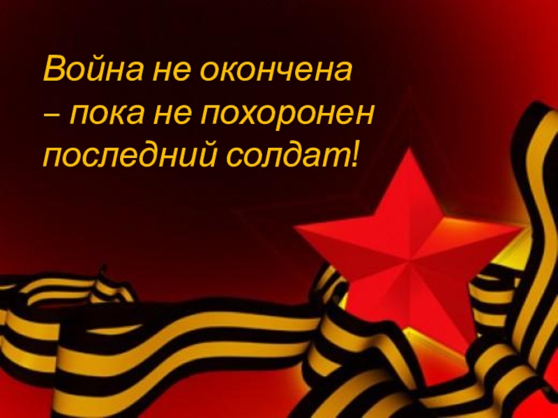 Слайд 13Война не окончена – пока не похоронен последний солдат!