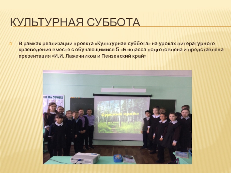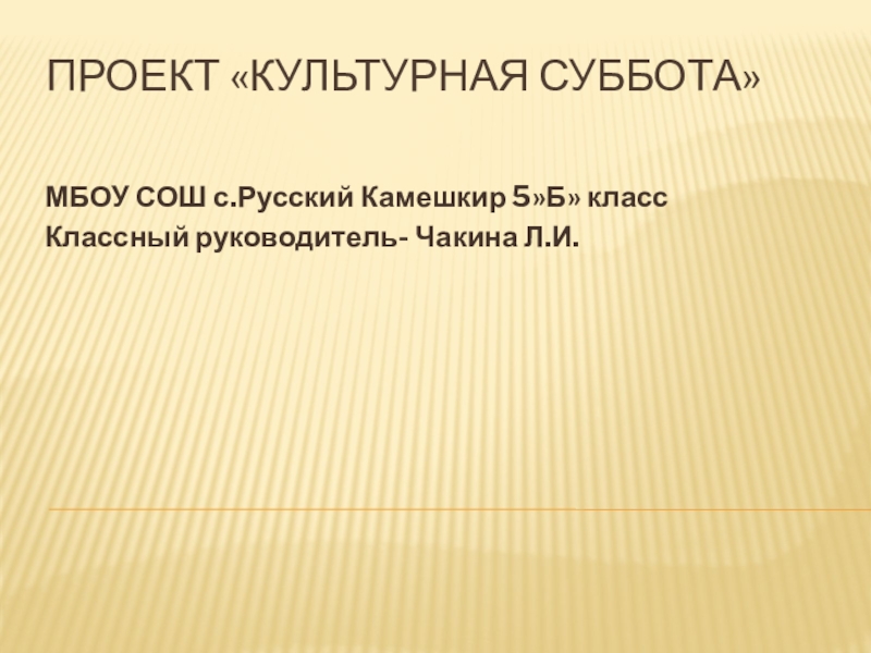 Проект «Культурная суббота»МБОУ СОШ с.Русский Камешкир 5»Б» классКлассный руководитель- Чакина Л.И.