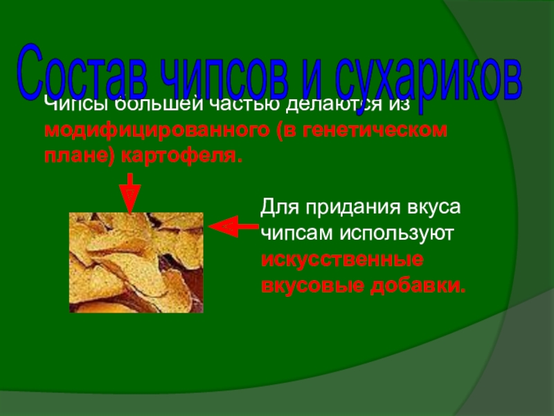 Для придания вкуса чипсам используют искусственные вкусовые добавки.