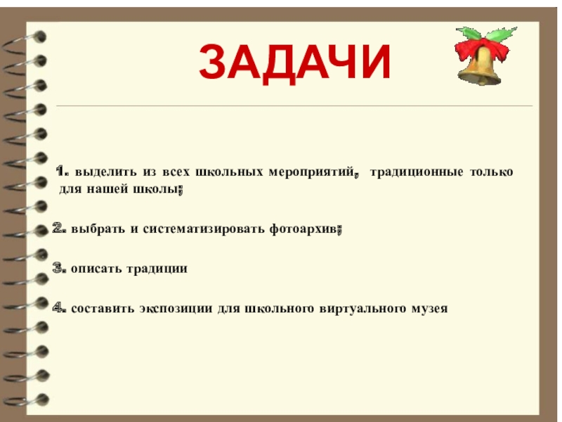 ЗАДАЧИ   1. выделить из всех школьных мероприятий, традиционные только для нашей школы;