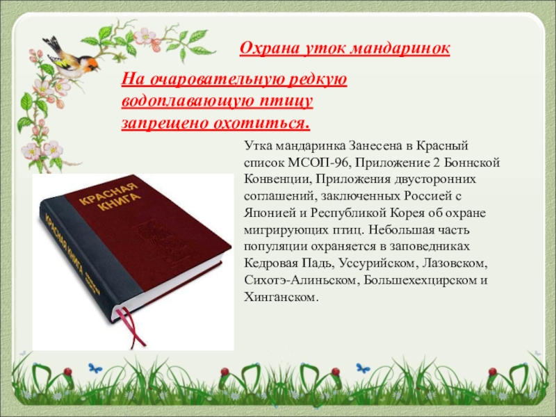 Охрана уток мандаринок