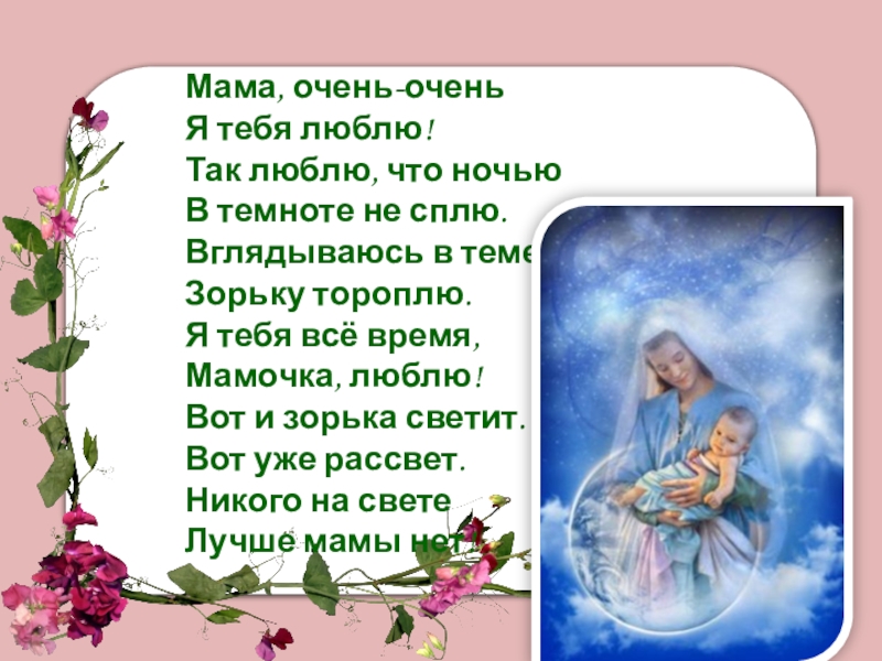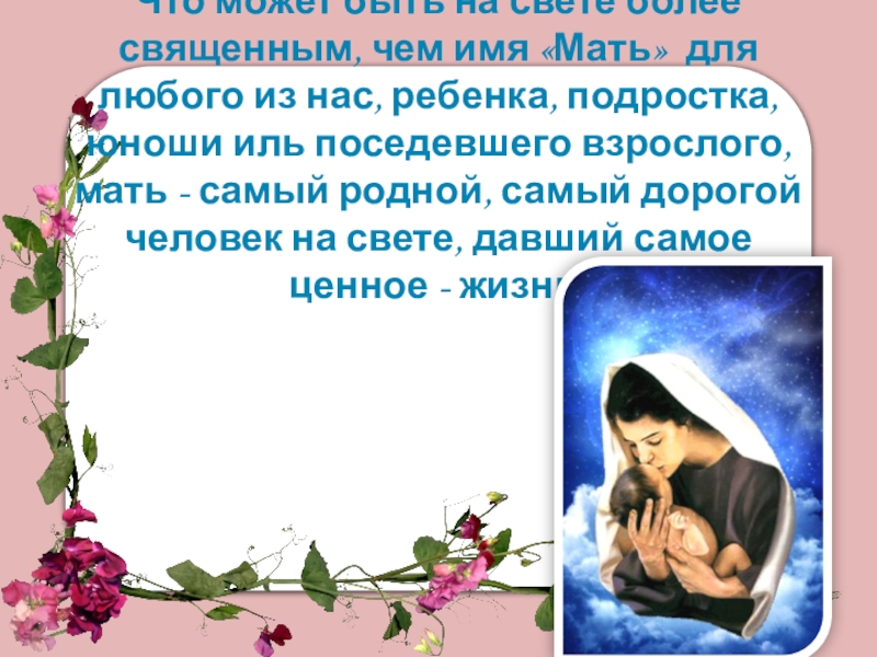 Слайд 17На свете не существует человека роднее и ближе матери. Ее любовь