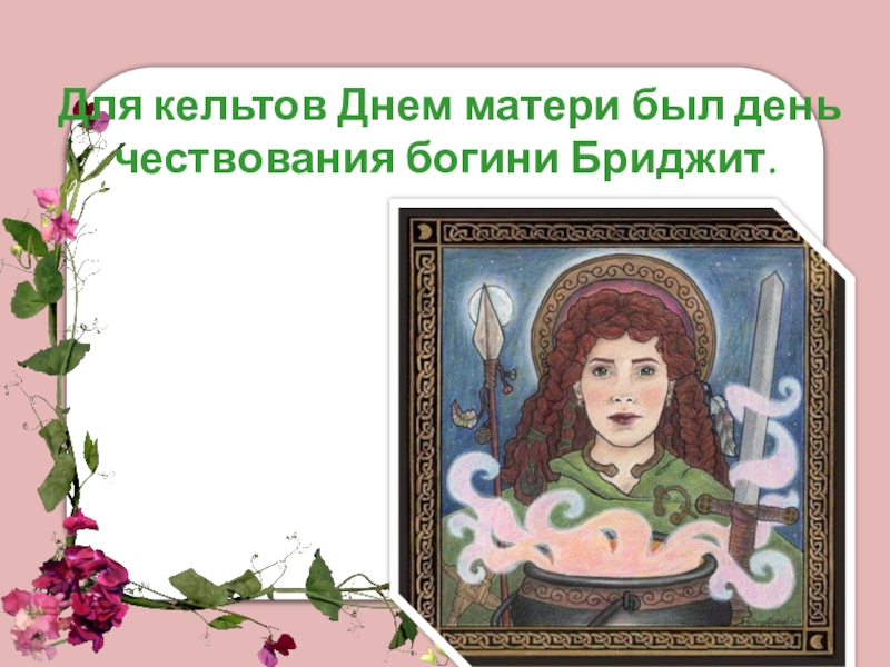 Слайд 5Для кельтов Днем матери был день чествования богини Бриджит.