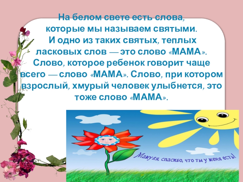 всего — слово «МАМА». Слово, при котором взрослый, хмурый человек улыбнется, это тоже слово «МАМА».