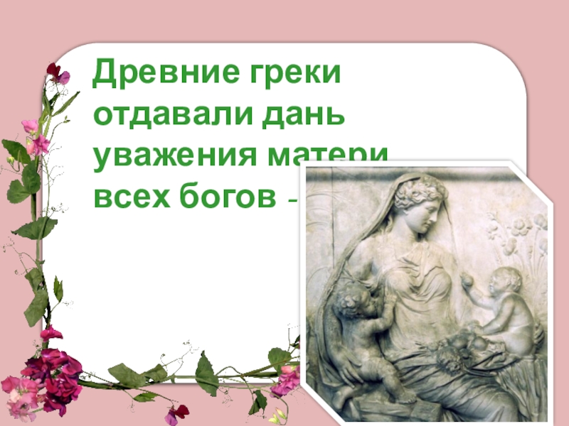 Слайд 4Древние греки отдавали дань уважения матери всех богов - Гее.