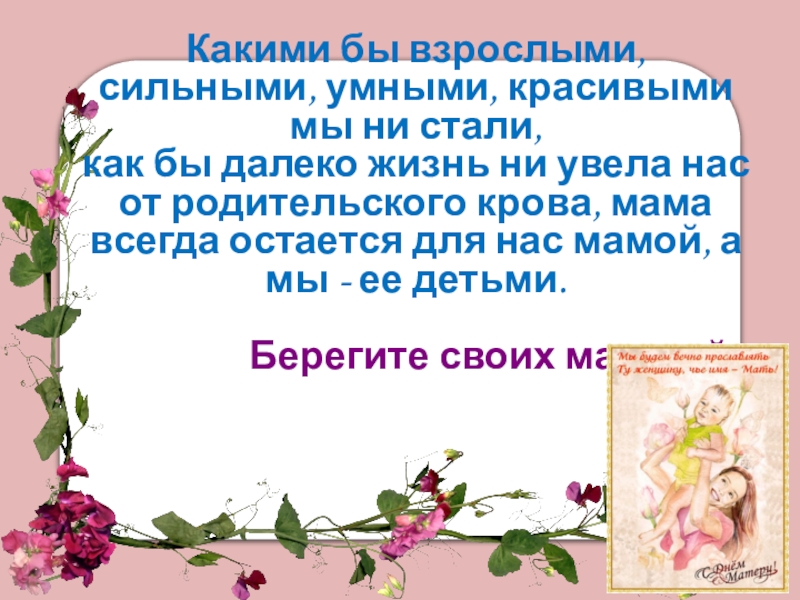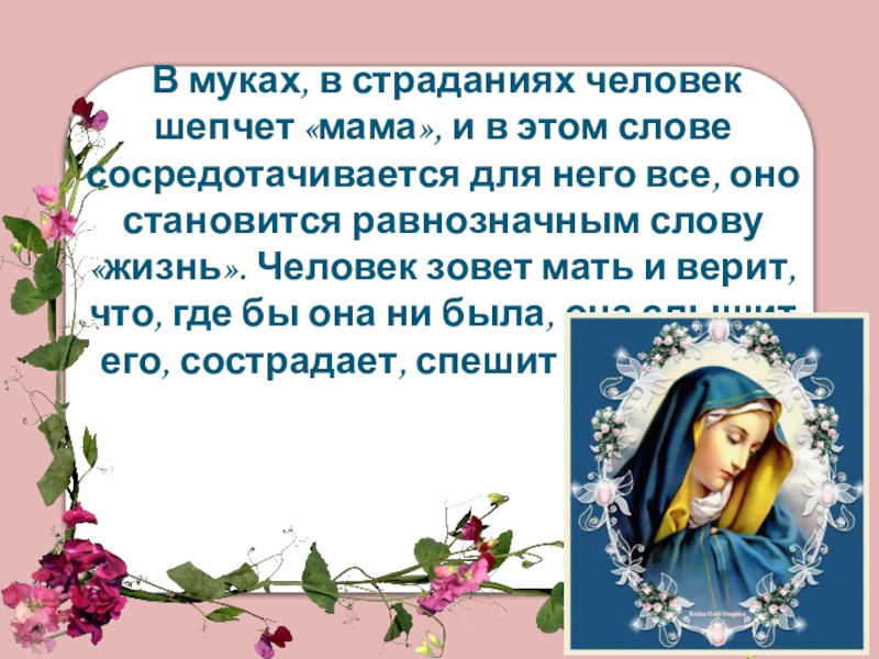 Слайд 22 В муках, в страданиях человек шепчет «мама», и в этом