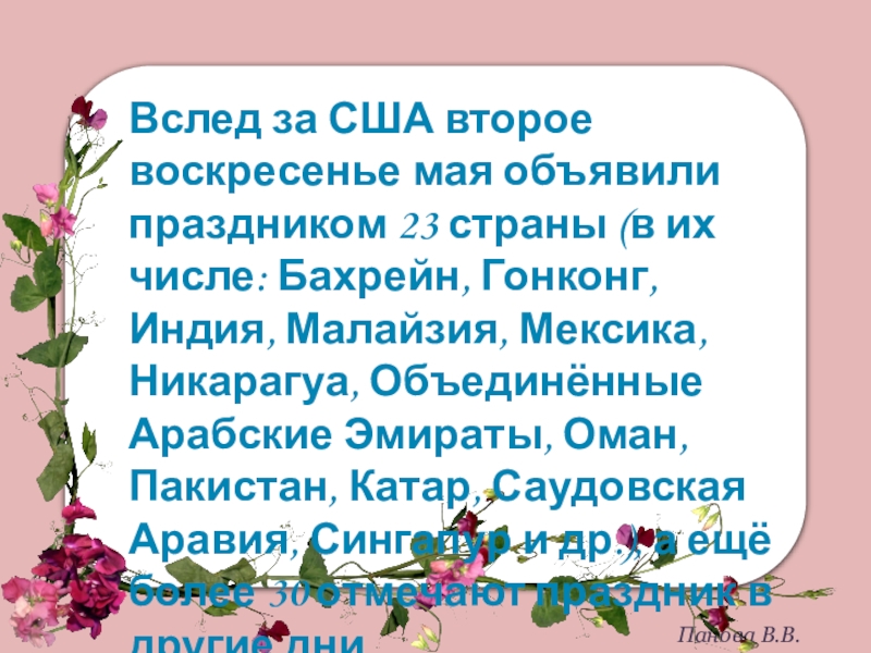 Вслед за США второе воскресенье мая объявили праздником 23 страны