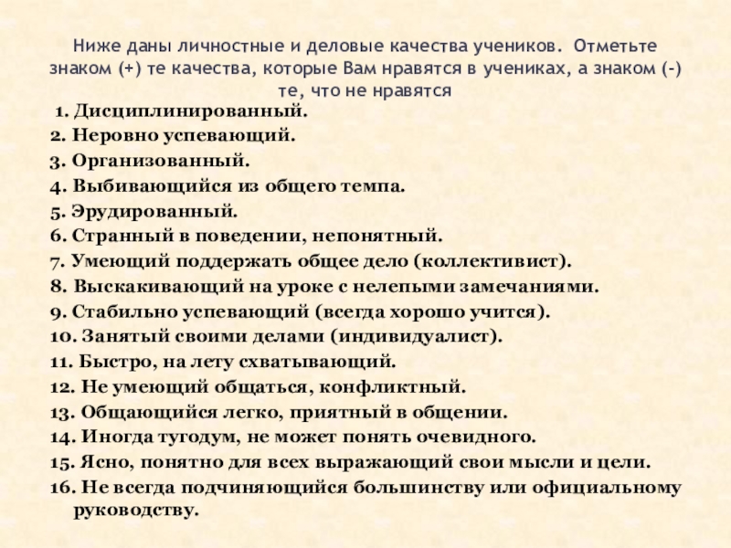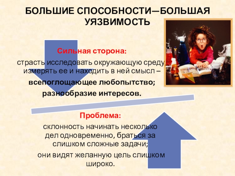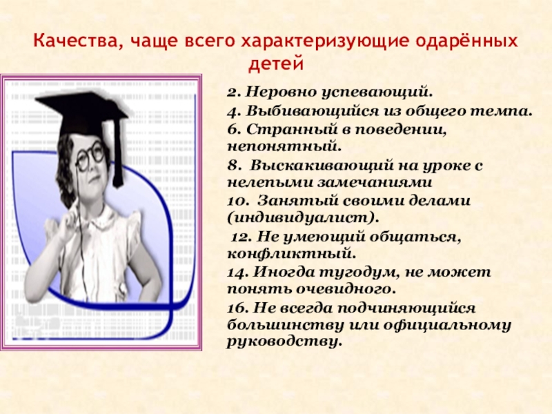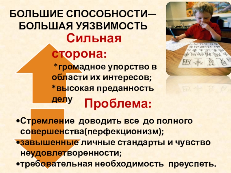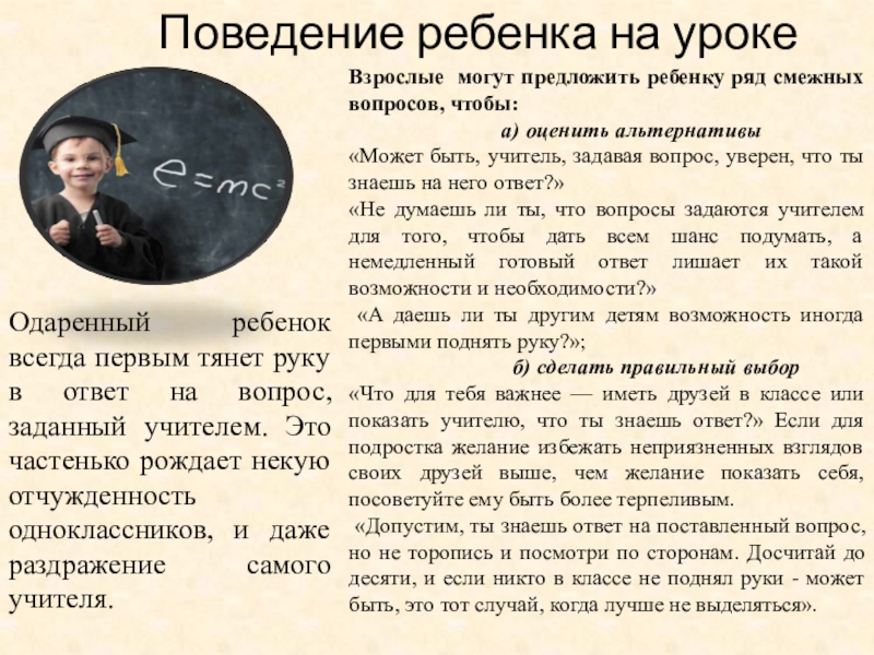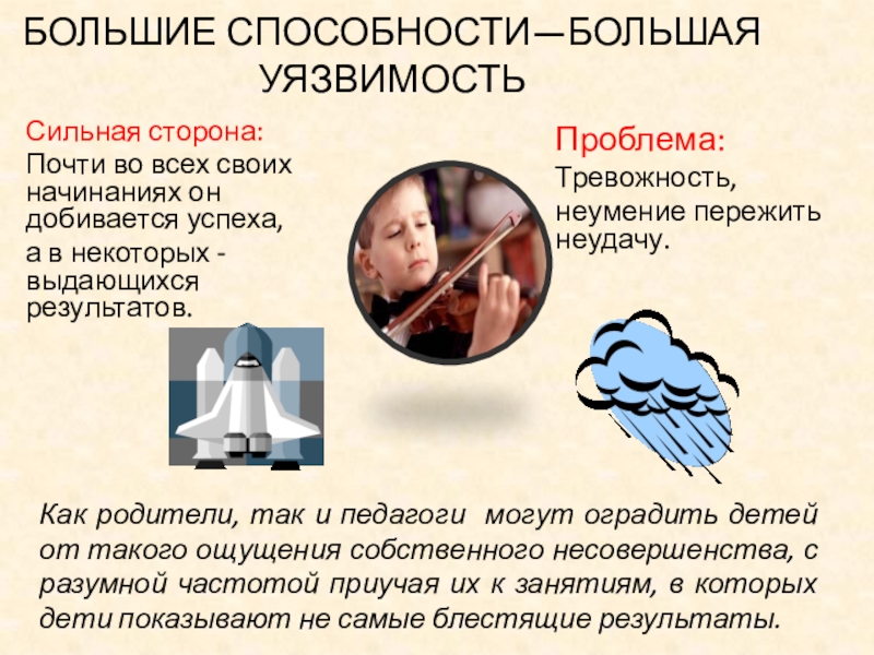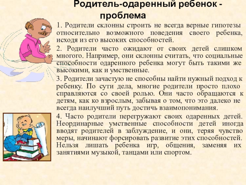 1. Родители склонны строить не всегда верные гипотезы относительно возможного поведения своего ребенка, исходя из его высоких способностей.