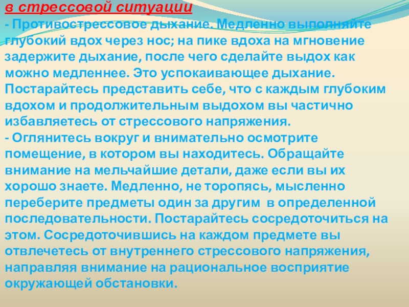 Слайд 10РЕКОМЕНДАЦИИ ПСИХОЛОГА: Если ты оказался в стрессовой ситуации