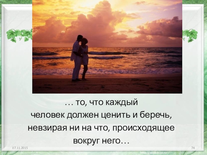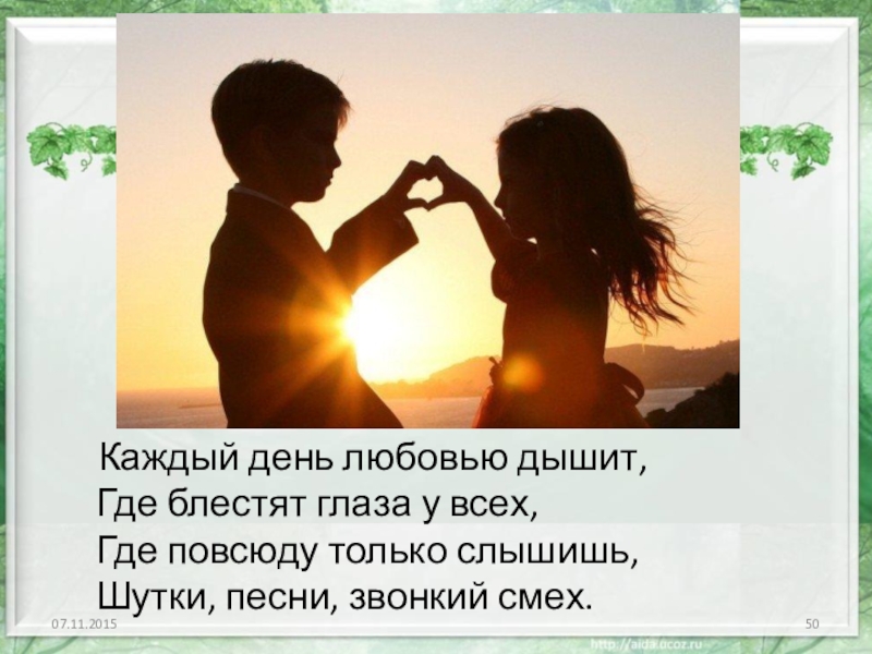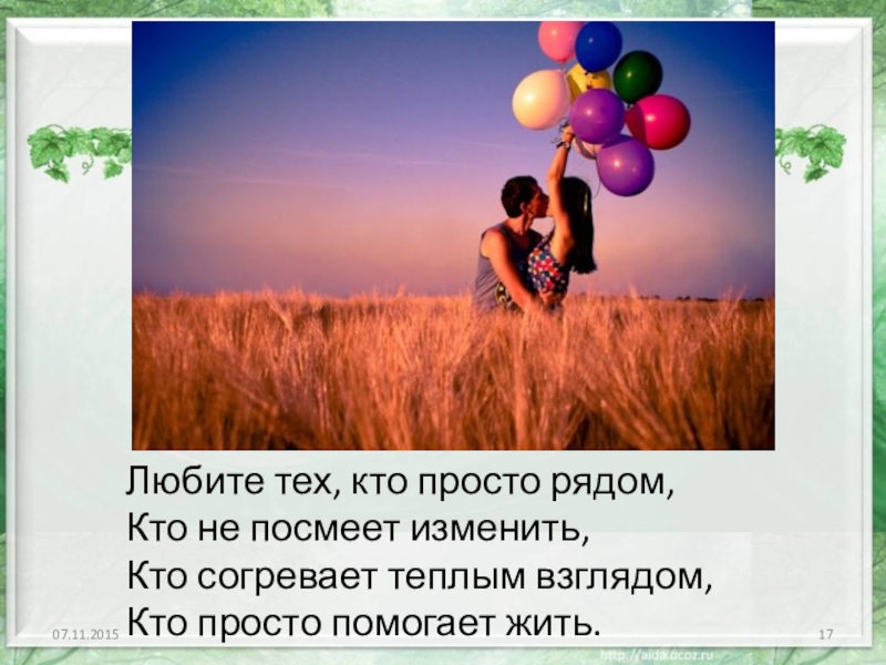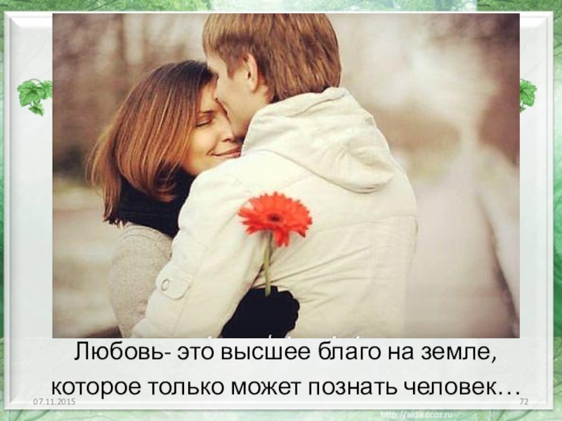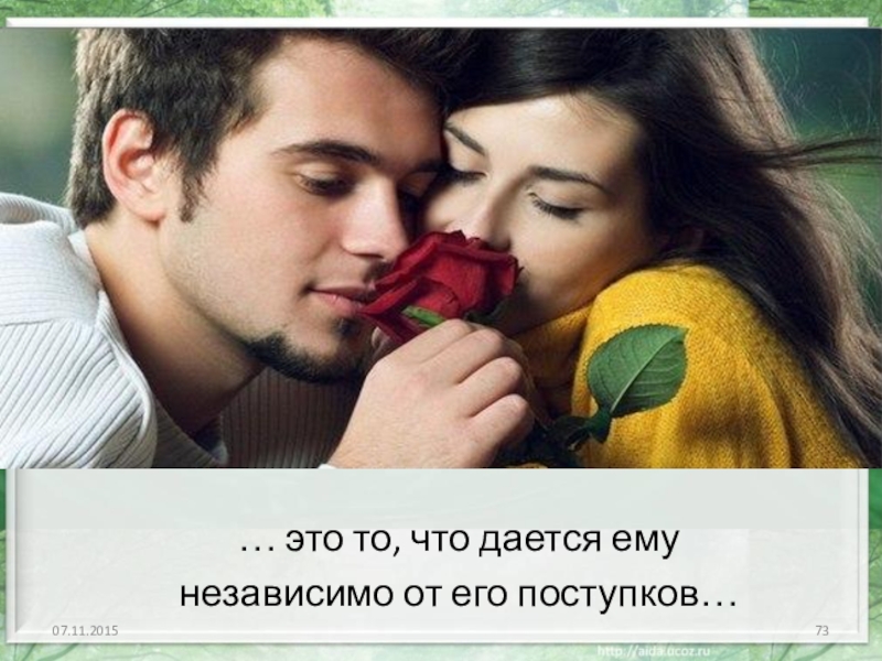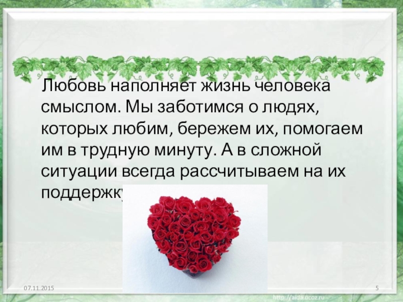 Слайд 5 Любовь наполняет жизнь человека смыслом. Мы заботимся о людях,