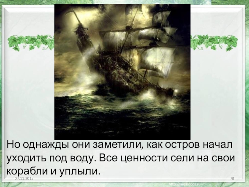 Слайд 78Но однажды они заметили, как остров начал уходить под воду. Все