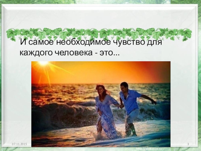 Слайд 3 И самое необходимое чувство для каждого человека - это...