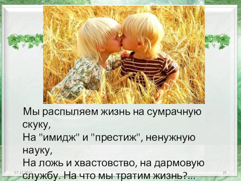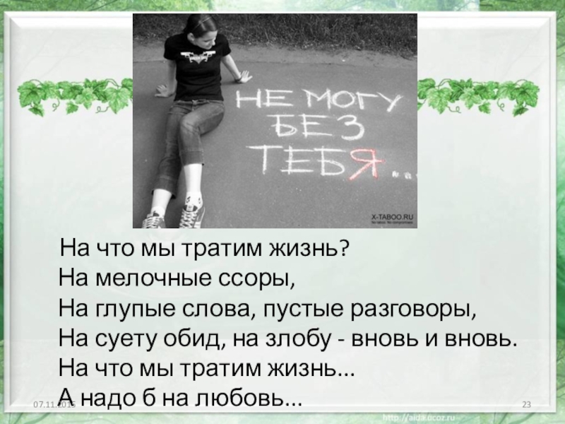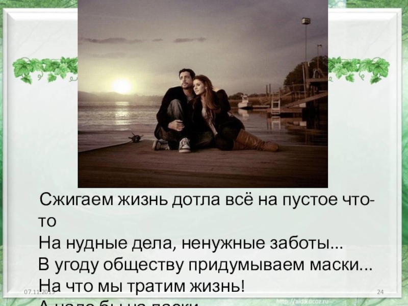 Слайд 24 Сжигаем жизнь дотла всё на пустое что-то