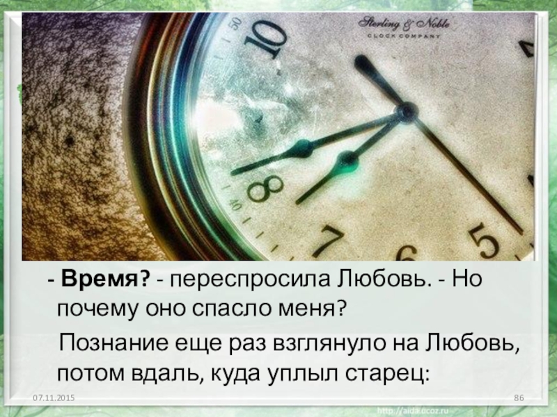Слайд 86 - Время? - переспросила Любовь. - Но почему оно спасло меня?
