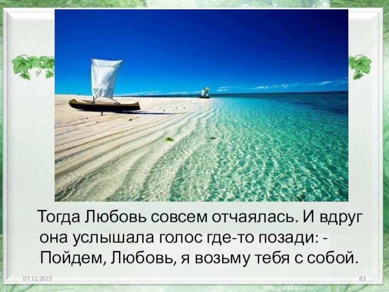 Слайд 83 Тогда Любовь совсем отчаялась. И вдруг она услышала голос