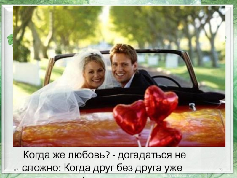 Слайд 70 Когда же любовь? - догадаться не сложно: Когда друг