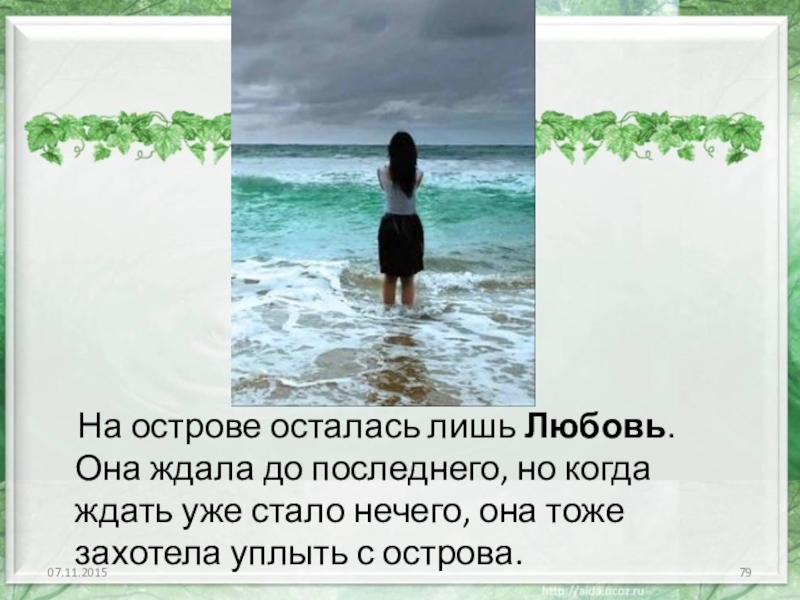 Слайд 79 На острове осталась лишь Любовь. Она ждала до последнего, но