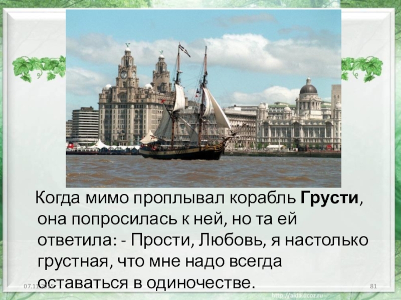 Слайд 81 Когда мимо проплывал корабль Грусти, она попросилась к ней, но