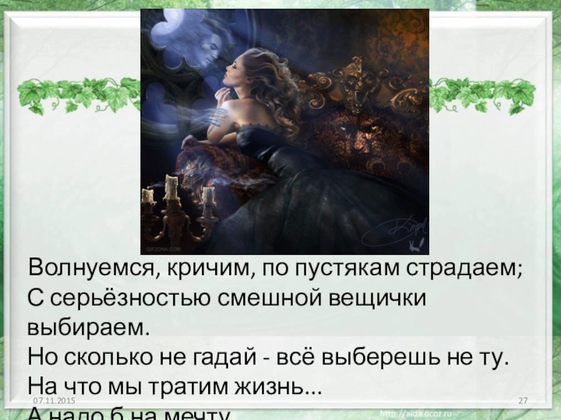 Слайд 27 Волнуемся, кричим, по пустякам страдаем;