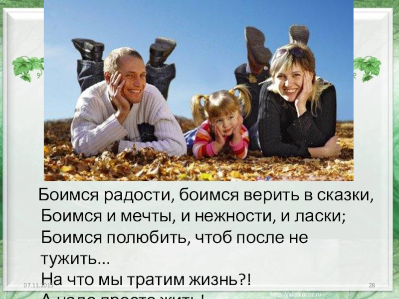 Слайд 28 Боимся радости, боимся верить в сказки,